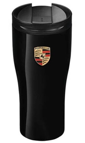 Hochwertiger Thermobecher in Geschenkverpackung in schwarzer Lackierung. Porsche-Wappen als eigenständiges Element auf Korpus platziert und Porsche-Schriftzug auf dem Deckel geprägt. Hält sowohl heiße Getränke warm, als auch kalte Getränke kühl. Deckel 100 % dicht.